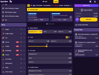 Spinbet ofrece una amplia gama de deportes, incluyendo: